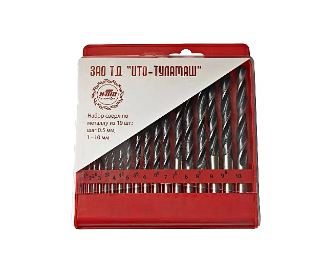 Набор сверл по металу из 19шт.1-10мм ТулмашВойдите, чтобы увидеть ценуВойдите для просмотра остатковНет в наличии