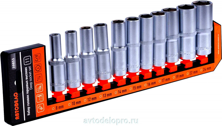• 39853 Набор головок высоких 11пр.(DR1/2";6РТ,8-24мм; холдер) АвтоДелоВойдите, чтобы увидеть цену