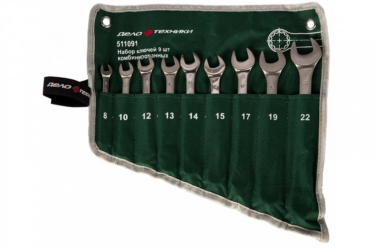 511091 Набор ключей комбинированных - 9шт.(8,10,12,13,14,15,17,19,22) тетрон.сумкаВойдите, чтобы увидеть ценуВойдите для просмотра остатковКУПИТЬ