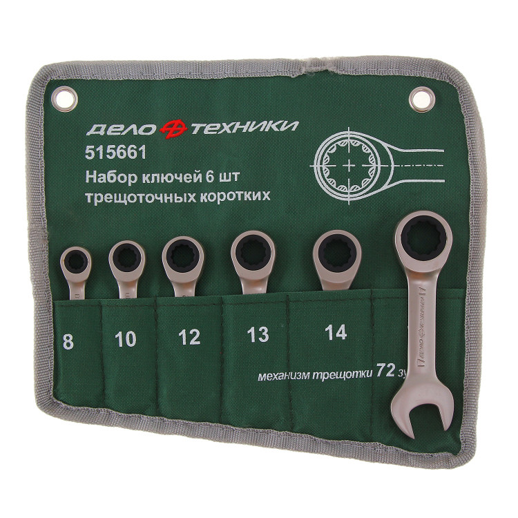 515661 Набор ключей комб.трещоточных коротких 6шт. (8,10,12,13,14,17мм) тетрон.сумкаВойдите, чтобы увидеть ценуВойдите для просмотра остатковКУПИТЬ