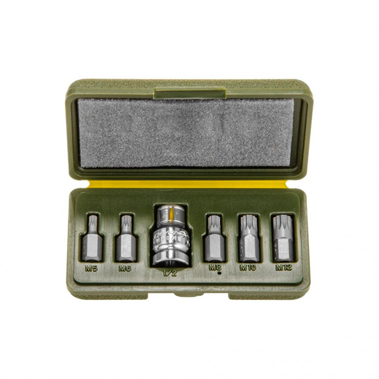 627446 Набор вставок 3/8 Spline 6 предм.(М5,М6,М8,М10,М12 L=30мм, переходник на кв.1/2Войдите, чтобы увидеть ценуВойдите для просмотра остатковНет в наличии