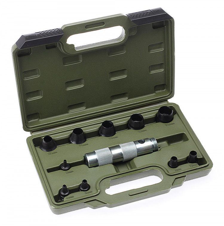 376511 Набор просечек со сменными насадками 11 предм.(,3,4,6,8,10,12,14,16,18,20мм) в кейсе (5шт)Войдите, чтобы увидеть ценуВойдите для просмотра остатковНет в наличии