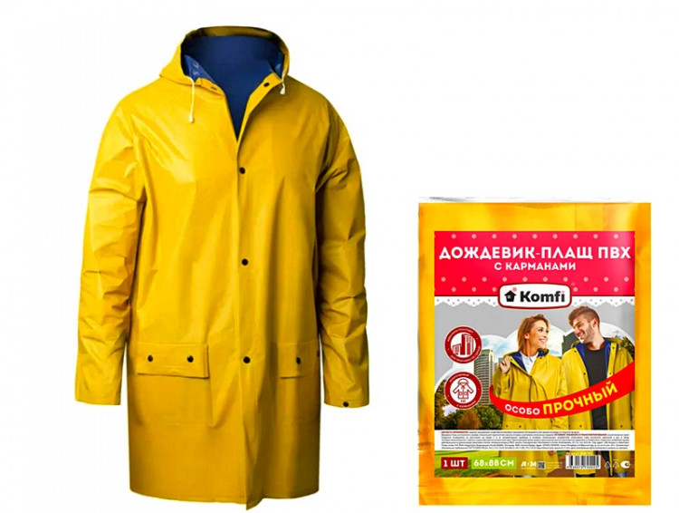 Дождевик-плащ,сверхпрочный на кнопках, ПВХ, желтый, KomfiВойдите, чтобы увидеть ценуВойдите для просмотра остатковКУПИТЬ