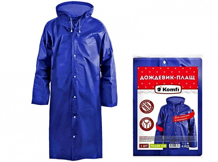 Дождевик-плащ синий EVA с капюшоном (на кнопках)Войдите, чтобы увидеть ценуВойдите для просмотра остатковНет в наличии