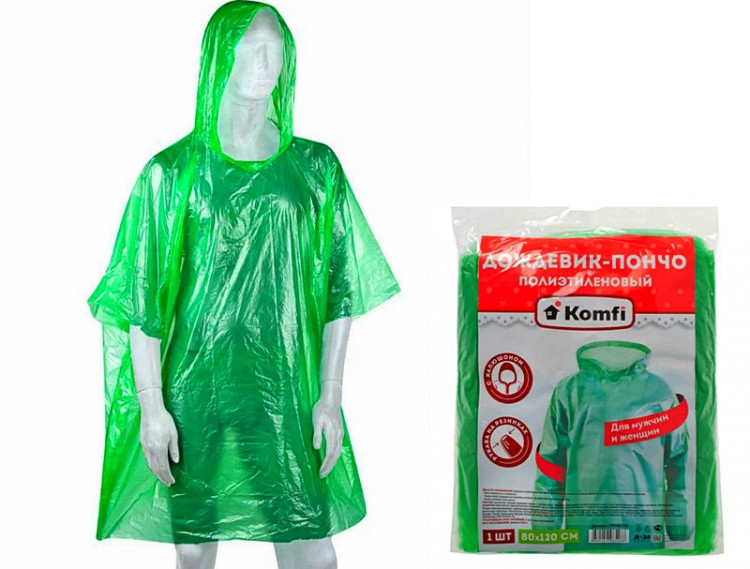 Дождевик-пончо полиэтиленовый с рукавами, зеленый Komfi/100/1Войдите, чтобы увидеть ценуВойдите для просмотра остатковКУПИТЬ