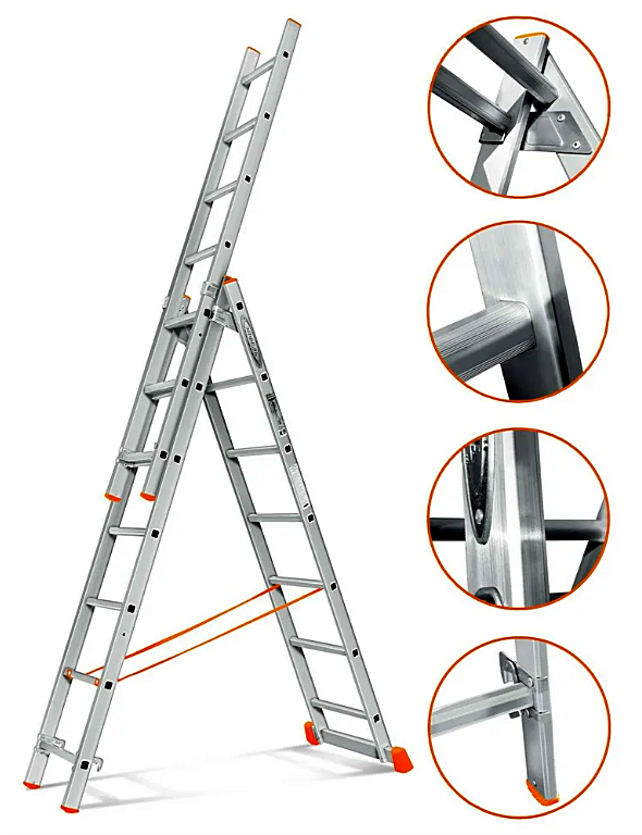 Лестница индустриального типа трехсекционная 3*9 алюмин. 250/412/574, 12,5 кг (368)Войдите, чтобы увидеть ценуВойдите для просмотра остатковКУПИТЬ