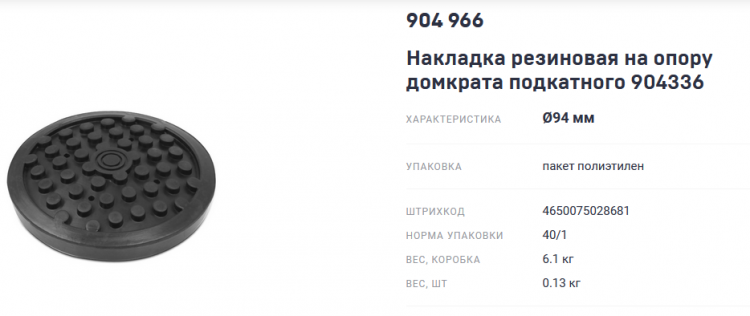 904966 Накладка резиновая на опору домкрата подкатного 904336Войдите, чтобы увидеть ценуВойдите для просмотра остатковНет в наличии