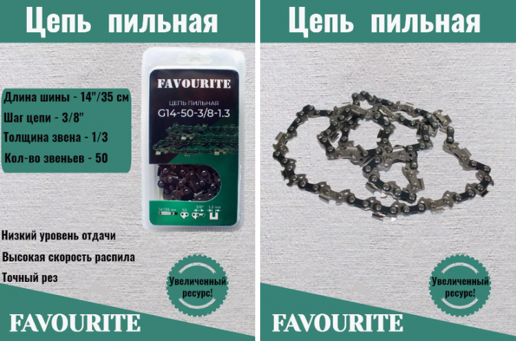 Цепь пильная 14"/35 см, 3/8", 1,3 мм, 50 G14-50-3/8-1.3 FAVOURITEВойдите, чтобы увидеть ценуВойдите для просмотра остатковНет в наличии