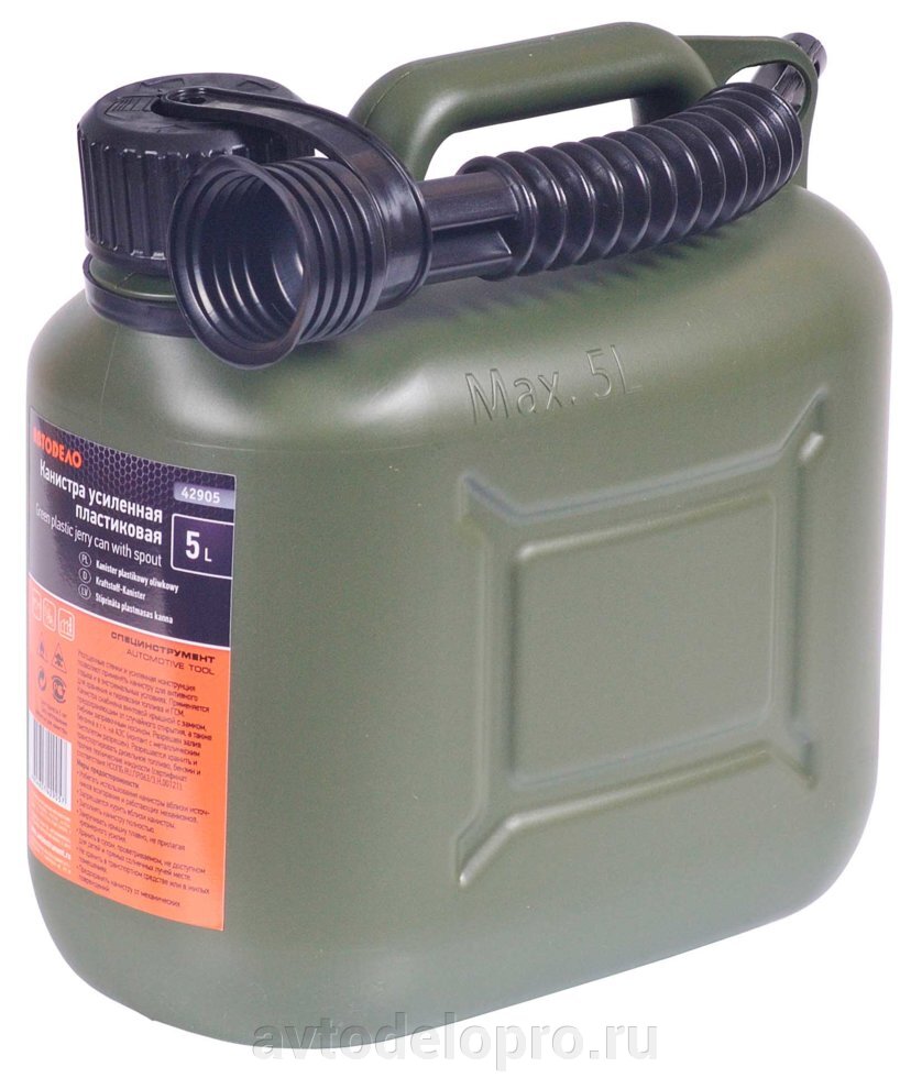 Канистра 5л для ГСМ усиленная, пластик ВП (с заливным устройством) АвтоДелоВойдите, чтобы увидеть ценуВойдите для просмотра остатковКУПИТЬ