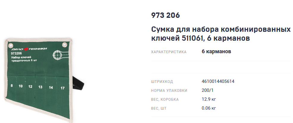Сумка фирменная для набора ключей трещоточных 8,10,12,13,14,15,17,19мм "ДТ" (8шт)Войдите, чтобы увидеть ценуВойдите для просмотра остатковКУПИТЬ