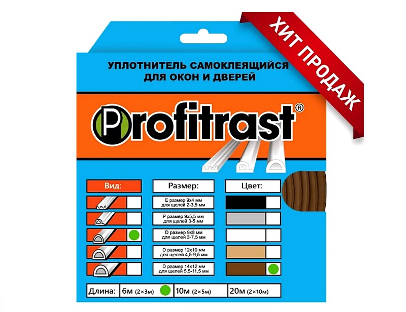 Уплотнитель для окон D-профиль 6м 14*12мм (коричневый) Profitrast SD-55Войдите, чтобы увидеть ценуВойдите для просмотра остатковНет в наличии