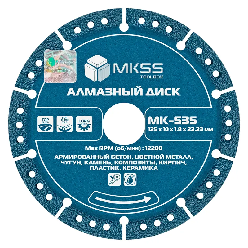 Диск алмазный универсальный сегмент 125x1,8x10x22,23мм MKSSВойдите, чтобы увидеть ценуВойдите для просмотра остатковКУПИТЬ