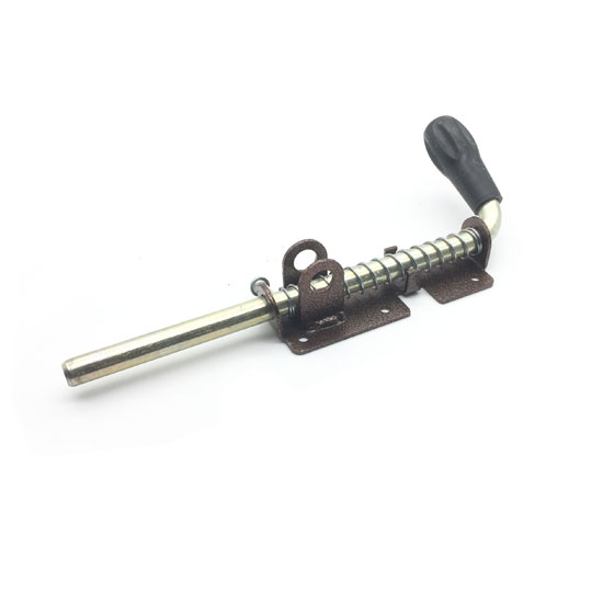 Засов пружинный с фиксацией 500мм. подходит для дверей дачных построек, гаражей, складов. Конструкция обеспечивает надежное удержание двери, контролируемое открытие и закрытие. Шпингалет применяется для запирания дверей, калиток и ворот. Задвижка изготовлена из стали 08ПС толщиной 3мм. Запорный ригель из калиброванного круга диаметром 16мм. Всё изделия кроме ригеля окрашено полимерным покрытием. Ригель оцинкованный.Удобная пластмассовая ручка.