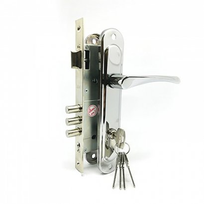 Комплект врезного замка для дверей китайского производства с открыванием на левую сторону. Стальной корпус оснащён ригелями из закалённой стали. Алюминиевые полноразмерные ручки расположены на стальных планках. Гальваническое покрытие наружных элементов обеспечивает защиту от механических повреждений и коррозии. Стандартное межосевое расстояние – 68 мм – позволяет монтировать замок на новые двери или использовать его для замены сломанного устройства в китайских полотнах. Бэксет 60 мм. Цилиндр в комплект поставки не входит и приобретается отдельно, исходя из параметров дверного полотна. Гарантийный срок работы составляет 5 лет.