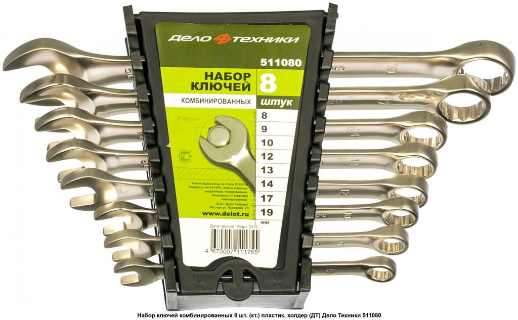 В состав набора входят ключи серии "Professional" следующих размеров: 8, 10, 12, 13, 14, 17 мм.