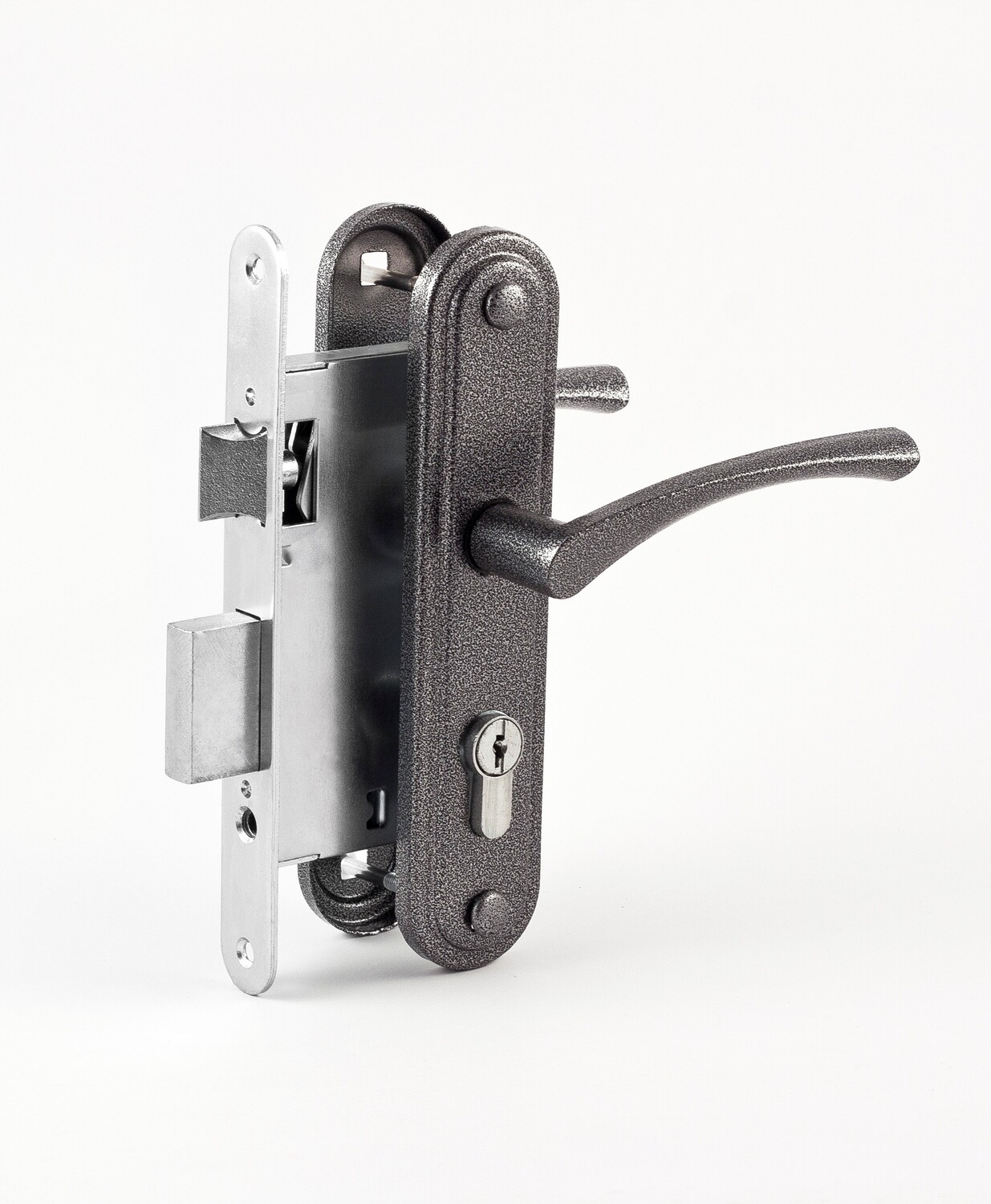 Главная/Каталог/Замки врезные с ручкой на планке/Замок врез. N96-85 К (ст.бронза)