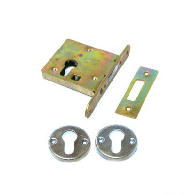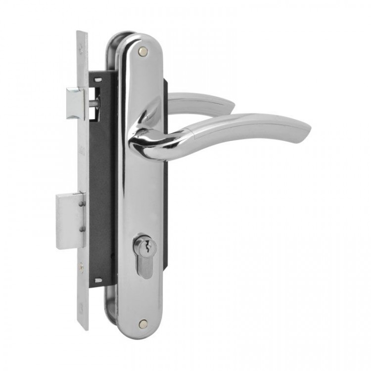 Комплект состоит из: ручек на планке (2 шт.), корпуса замка (1 шт.), цилиндрового механизма (1 шт), ключей (5 шт), ответной планки (1 шт.). Также в комплекте идёт крепеж для установки корпуса, ручек на планке и цилиндра.