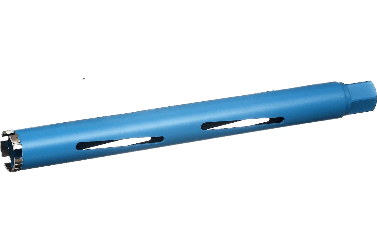Коронка алмазная с лазерной пайкой сегмента, является сменным элементом для установок алмазного бурения. Предназначена для бурения ровных отверстий во всех видах бетона, кирпича и асфальта. Используется как с водяным охлаждением, так и без водяного охлаждения, но при использовании с водяным охлаждением увеличивается ресурс эксплуатации коронки. На коронке пайка сегментов производится лазером, что увеличивает ресурс коронки по прочности и в эксплуатации. Диаметр - 120 мм, длина - 450 мм, высота сегмента - 24мм, толщина сегмента - 3,8мм, толщина корпуса 10 мм