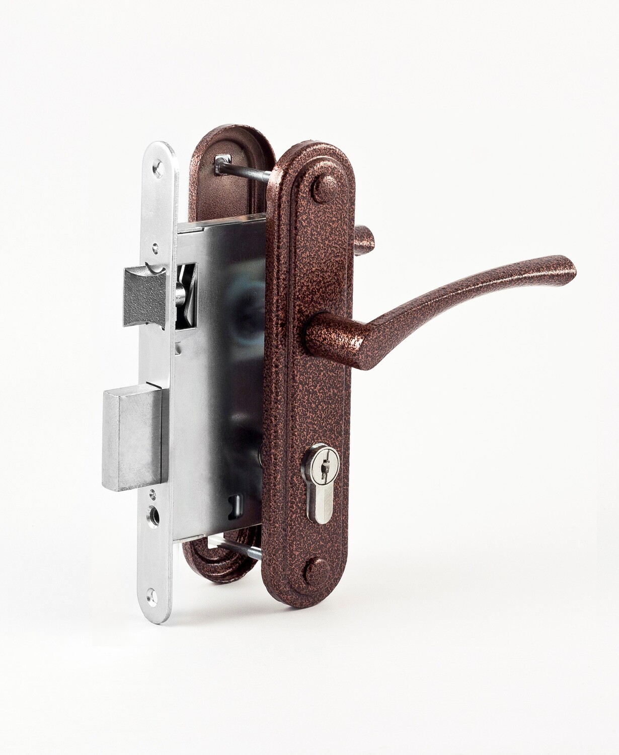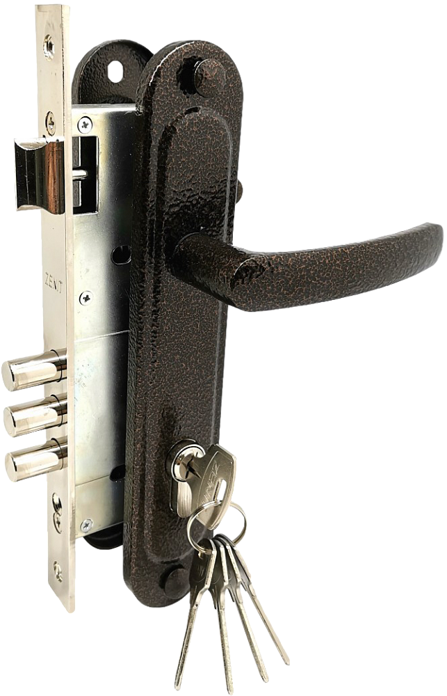 Замок врезной изготовлен из современных технологичных материалов, прочный и надежный. Рабочий ресурс не менее 400 000 циклов открывания/закрывания. Ручка на планке, а также лицевая и ответная планки замка имеют гальваническое многослойное покрытие в 5 слоев. Корпус замка имеет антикороззийное покрытие.