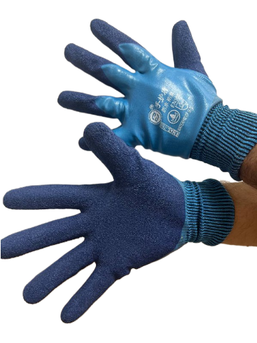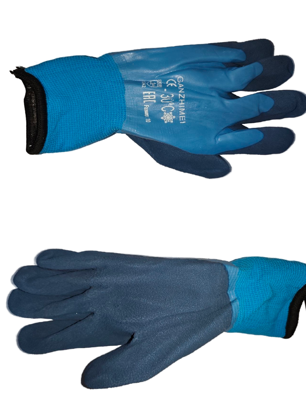 А-53 перчатки акриловые утепленные 300# c дв. вспен.лат.покрыт. (синяя зал.черная ладонь) 10шт.